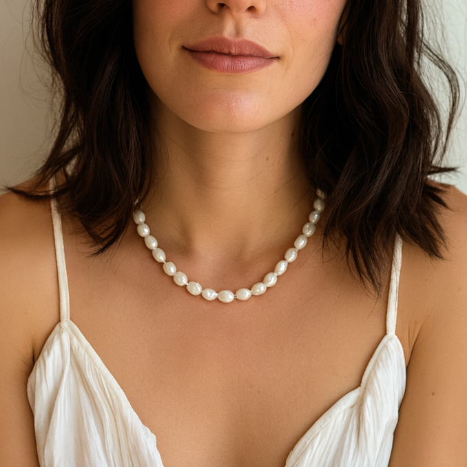 The Lily & Rose freshwater pearl necklace is a classic and elegant piece that never goes out of style. Hand-strung with genuine freshwater pearls, each uniquely shaped pearl adds natural charm and luster, making every necklace one of a kind. The necklace features a secure clasp with an extension chain, offering adjustable length for the perfect fit. Its refined white pearls make it a versatile accessory, ideal for adding a touch of timeless elegance to both everyday outfits and special occasion ensembles.