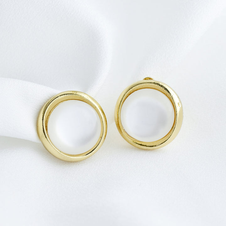 Elegant in their simplicity, the Lily & Rose minimalist white and gold clip-on earrings feature a round centre encased in a polished gold-tone setting. Designed for those who prefer a clean, understated look, these earrings offer classic charm without the need for pierced ears. The clip-on fastening ensures all-day comfort and secure wear, making them an ideal choice for everyday elegance or subtle sophistication at formal events.