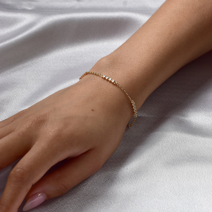 Add a touch of elegance to your everyday look with the iDesire Cubic Zirconia Gold-Tone Chain Bracelet. This delicate piece features a fine gold-tone chain adorned with brilliant round cubic zirconia stones, evenly spaced to create a refined and balanced design. The adjustable chain ensures a comfortable fit, making it suitable for both casual and formal occasions. A perfect choice for those who appreciate subtle sparkle and timeless style.