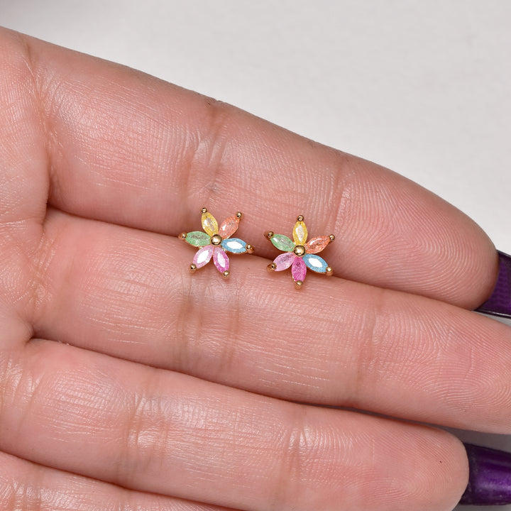 Premium Cubic Zirconia Rainbow Flower Stud Earrings