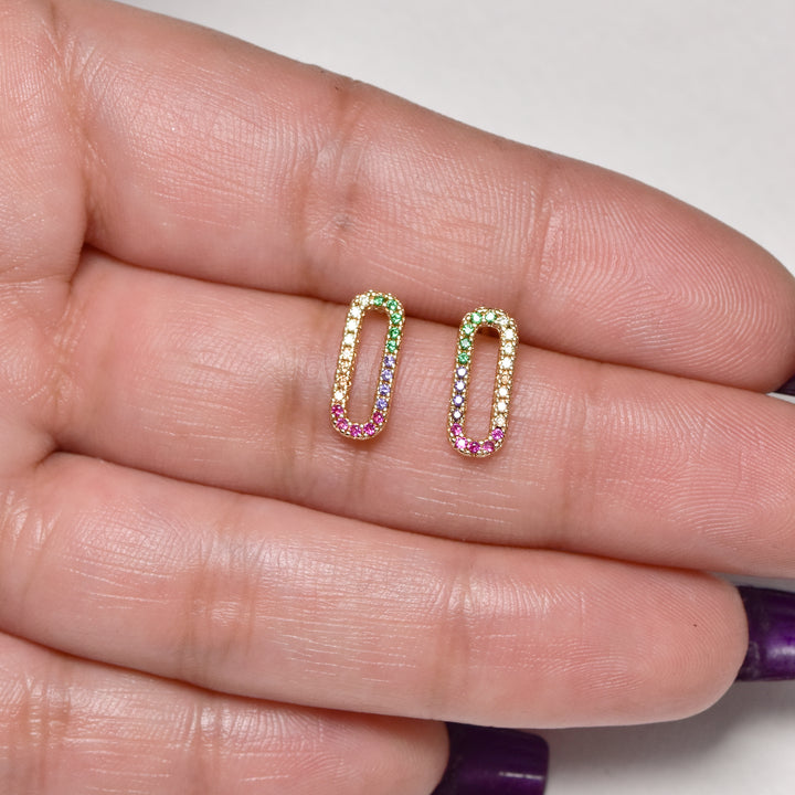 Premium Cubic Zirconia Rainbow Oval Stud Earrings
