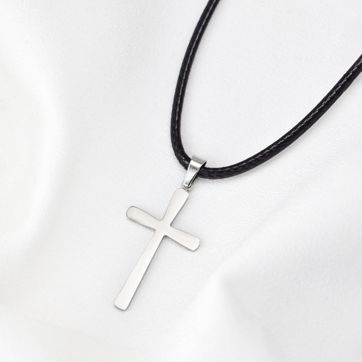 Add a bold yet minimal statement to your look with the stainless steel & black cord cross necklace. Featuring a sleek black cord paired with a polished cross pendant, this necklace is designed for effortless styling and everyday wear. Available in silver and gold plating variations, it offers versatility to match your personal style. The adjustable extension chain ensures a comfortable fit, while the stainless steel design makes it waterproof, durable, and easy to maintain. Perfect for layering or wearing solo for a modern finish.