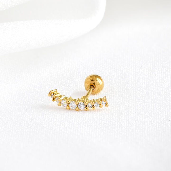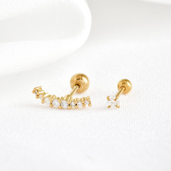 Sleek and modern duo designed to add a touch of brilliance to any look. This set includes a stunning curved bar adorned with sparkling cubic zirconia stones, creating a delicate yet modern silhouette, alongside a classic round CZ stud for seamless matching. Crafted from high-quality stainless steel, these piercings are resistant to tarnish, rust, and corrosion, ensuring lasting durability and shine. Their hypoallergenic properties provide a comfortable fit, making them ideal for daily wear. Whether worn individually for a subtle shimmer or styled together for a chic, layered effect, this versatile set is perfect for elevating any jewellery collection.