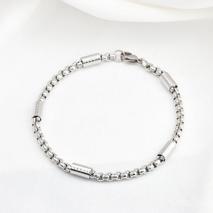 Stainless Steel Cylinder Accent Box Chain Bracelet