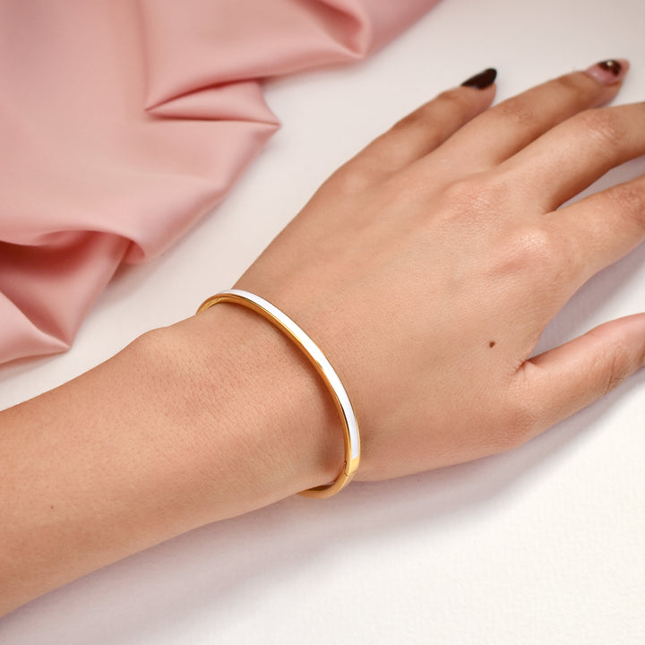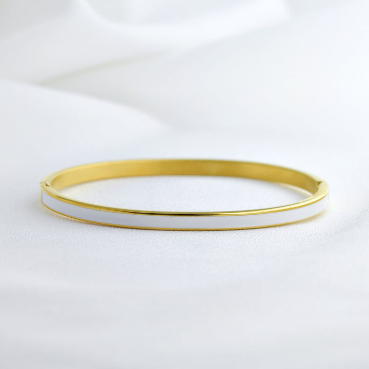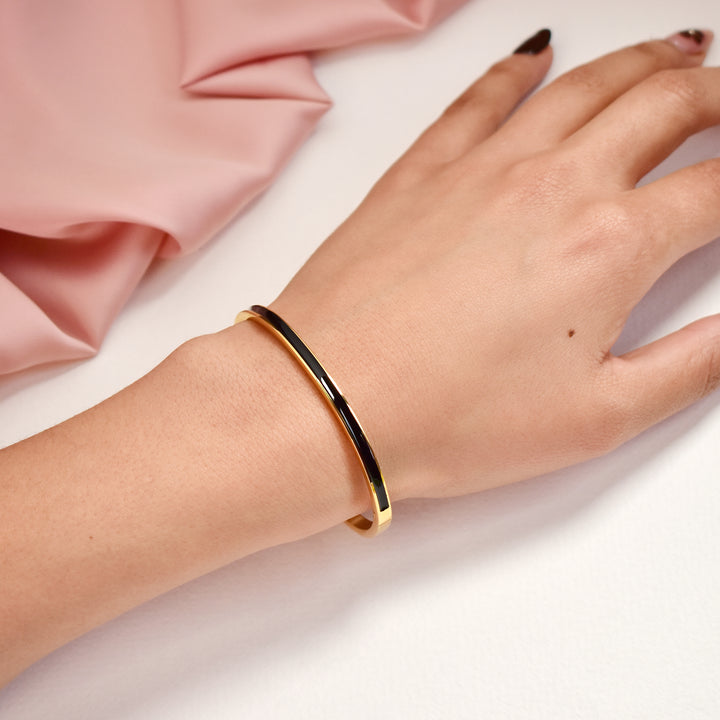 Sleek and minimal, the Steel My Heart Gold-Tone Enamel Bangle brings effortless sophistication to your jewellery collection. This slim bracelet features a polished gold-tone finish with a striking enamel inlay—perfect for adding a bold accent to both casual and dressy looks.