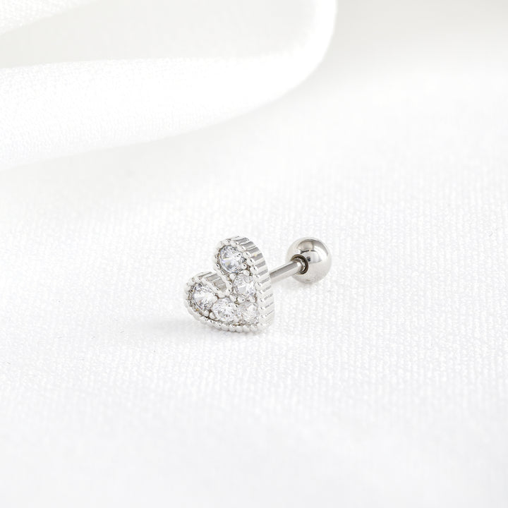 CZ Heart: 3mm, Pin Length: 6mm, Ball: 3mm