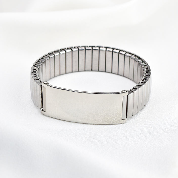 Bold and practical, this stretch bracelet is crafted from stainless steel with a sleek finish. Designed for effortless wear, the flexible expansion band adjusts to your wrist without the need for a clasp, ensuring comfort and convenience all day long.