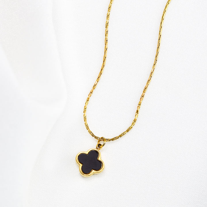 Add a touch of elegance and versatility to your collection with the Steel My Heart Waterproof Stainless Steel Enamel Clover Necklace. Featuring a sleek enamel clover charm framed in polished gold-tone stainless steel, this necklace blends modern style with timeless appeal. The durable 40cm chain includes a 5cm extension, offering an adjustable fit for comfort and layering. With its waterproof and tarnish-resistant design, this necklace is perfect for everyday wear while maintaining its shine and sophistication. A chic accessory that transitions seamlessly from casual to formal occasions. Length: 40cm + 5cm extension chain Width: 1mm Clover: 9mm diameter