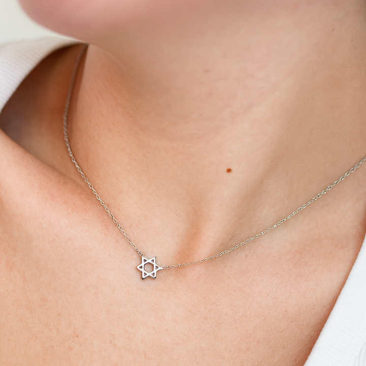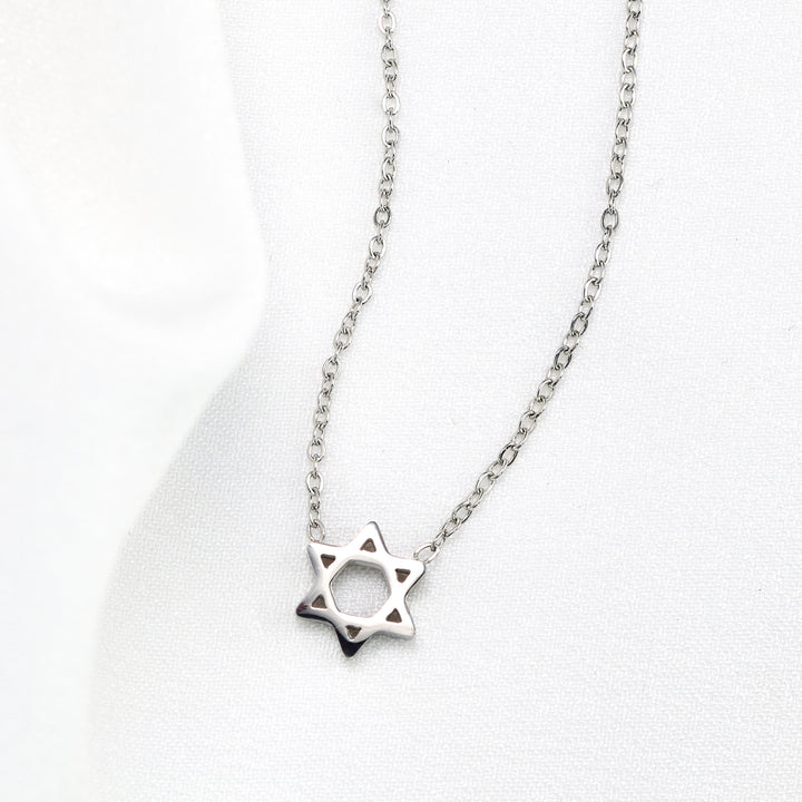 Carry a meaningful style with the Steel My Heart waterproof stainless steel Star of David necklace. Featuring a polished 8mm Star of David pendant on a sleek chain, this necklace blends modern simplicity with timeless symbolism.