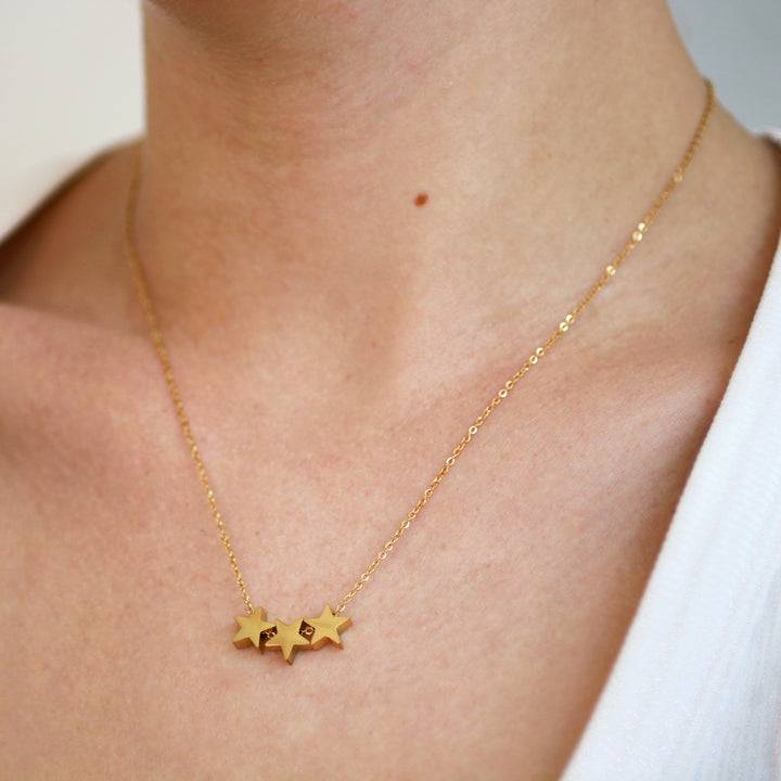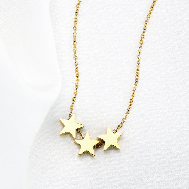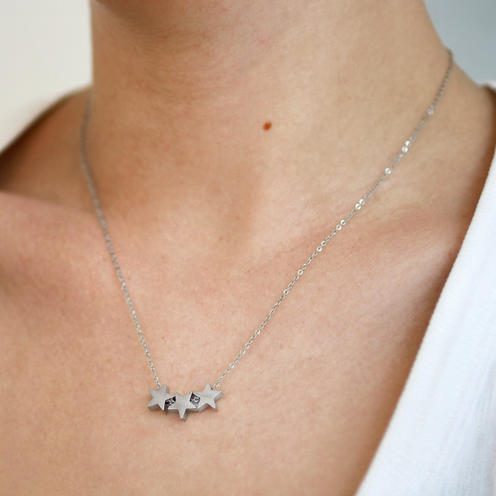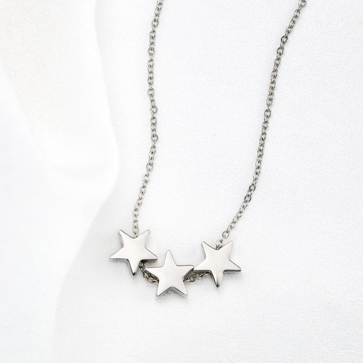 Shine bright with the Steel My Heart waterproof stainless steel triple star necklace. Featuring three polished star charms on a sleek chain, this necklace is a playful yet stylish piece perfect for everyday wear.